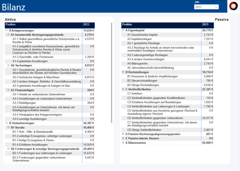 Über 70 Kennzahlen für tiefgehende Einblicke, in 6 verschiedene Kategorien unterteilt. unbegrenzt viele Perioden können verglichen werden. Bedingte Formatierung macht die Fortschritte für viele KPIs erkennbar.