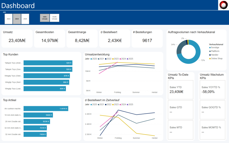 Unsere standardisierten Reporting-Lösungen liefern Ihnen klare und fundierte Einblicke in die wichtigsten Unternehmensbereiche. Ob Sales, Finance, Einkauf oder HR – wir schaffen Transparenz über Ihre Daten und unterstützen Sie dabei, fundierte Entscheidungen zu treffen. Durch strukturierte Dashboards und automatisierte Auswertungen erhalten Sie jederzeit einen aktuellen Überblick über Ihre Performance und Potenziale.